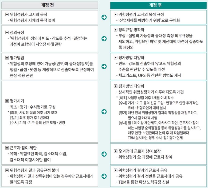 위험성평가 개정 전후 비교 (출처 : 안전보건공단)