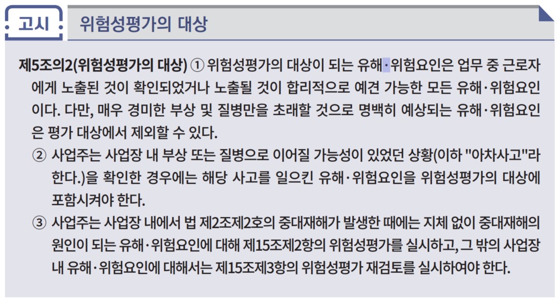 이번글에서는 위험성평가의 대상에 대해서 자세히 알아보도록 하겠습니다.