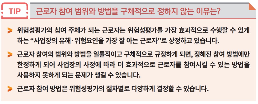 위험성평가 근로자 참여 팁 (출처 : 안전보건공단)