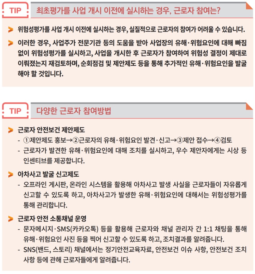 위험성평가 근로자 참여 팁 (출처 : 안전보건공단)