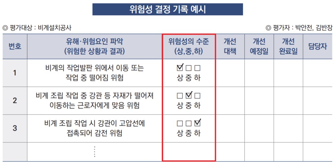 파악한 유해 · 위험요인이 얼마나 위험한지를 가늠하는 단계입니다.
