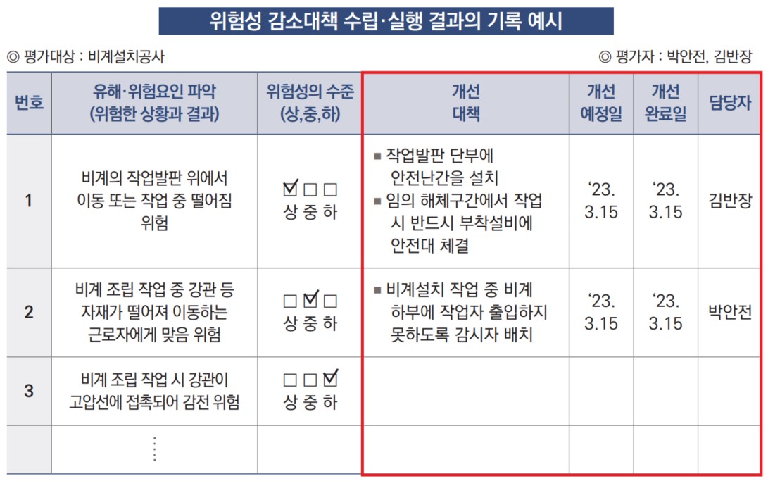 위험성 감소대책 수립 · 실행