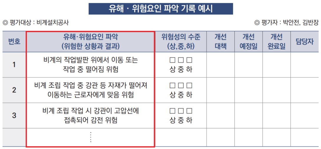 - “위험에 노출되는 근로자가 어떤 작업을 하는 몇 명인지”
