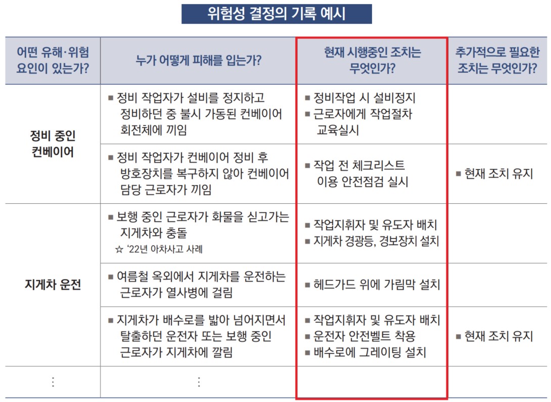 - 어떤 유해·위험요인에 대해서는 지금도 안전·보건조치가 적절하게 시행되고 있을 수도 있기 때문입니다.