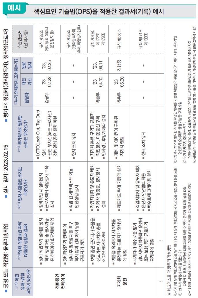 핵심요인 기술법(OPS)을 적용한 결과서(기록) 예시