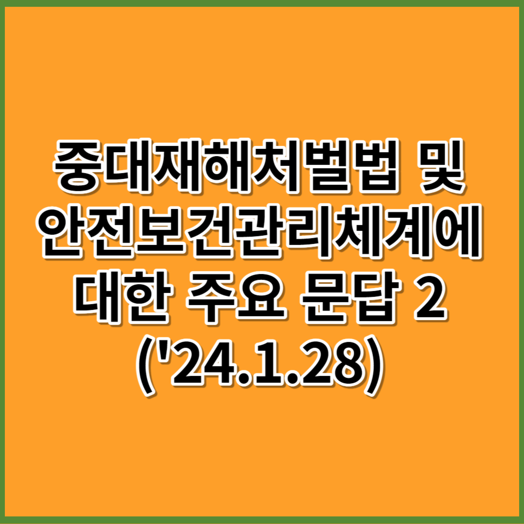 중대재해처벌법 및 안전보건관리체계에 대한 주요 문답 1('24. 1. 28)