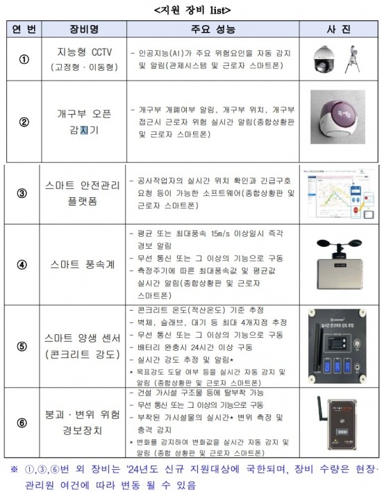 2024년도 스마트 안전장비 지원사업 계획(안)을 국토안전관리원에서 공고하였습니다.