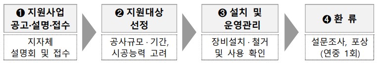 (용역수행업체) 장비의 설치·철거를 실시하고, 시공사에게 장비관리 유의사항 및 사용 교육, 필요시 현장 기술지원을 실시-