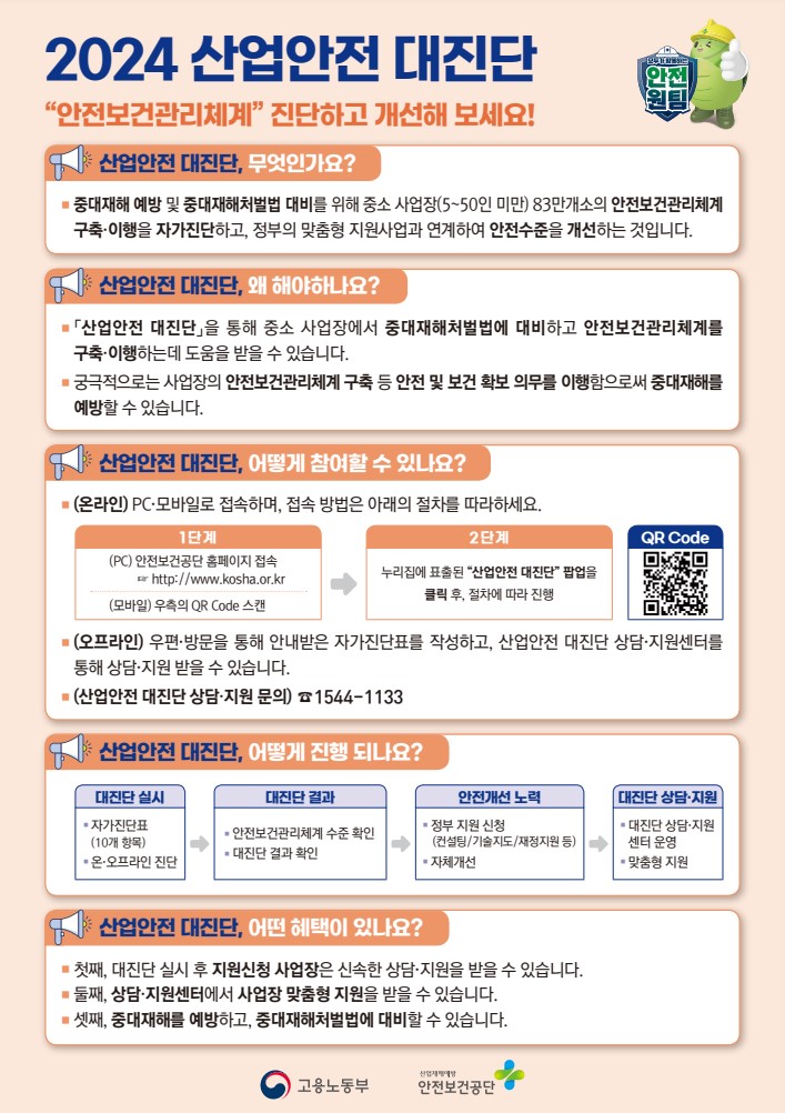 관련 대진단 홍보자료와 대진단 홈페이지를 공유하오니 필요한 사업장은 진단하고 개선하시길 바랍니다.