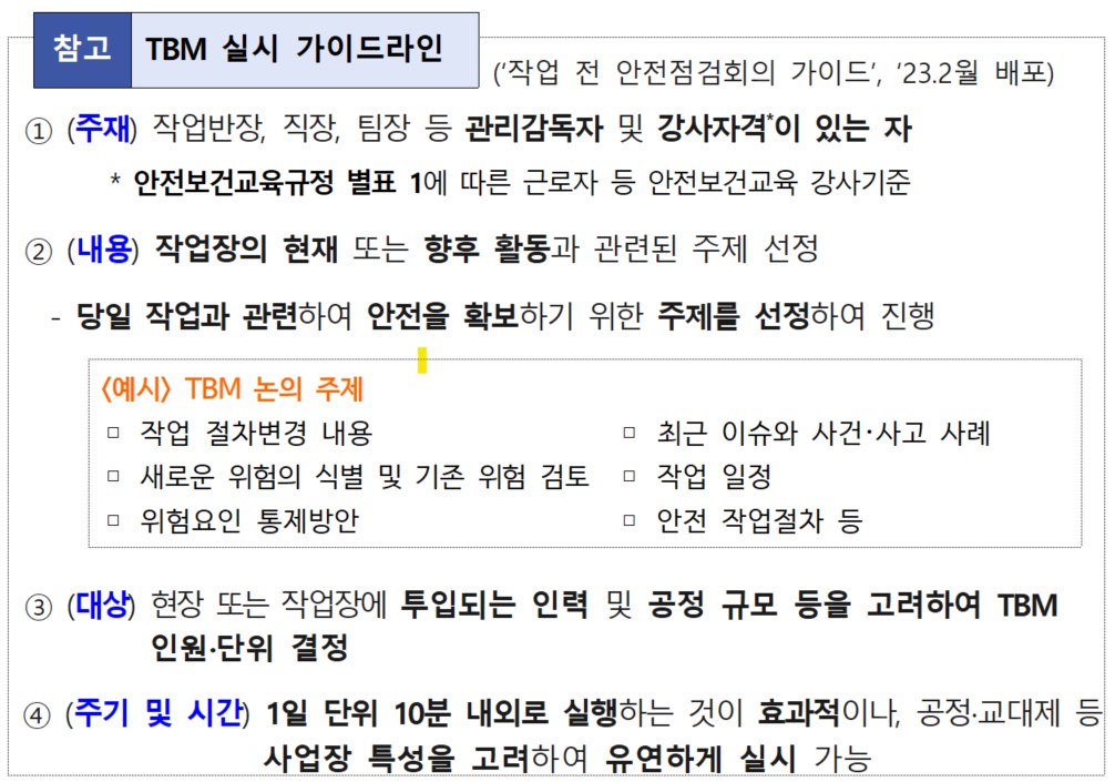 TBM 실시 가이드라인 (출처 : 고용노동부)