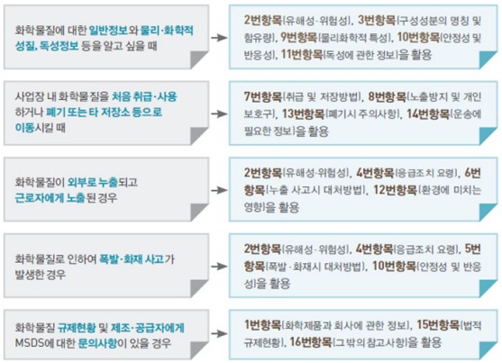 물질안전보건자료(MSDS)의 구성항목별 활용방법