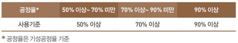 - 대상액 5억 원 미만 또는 50억 원 이상 : 대상액 x 비율