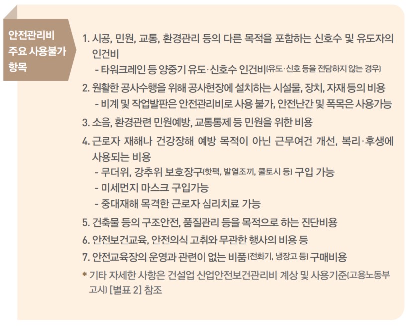 안전보건관리비 주요 사용불가 항목