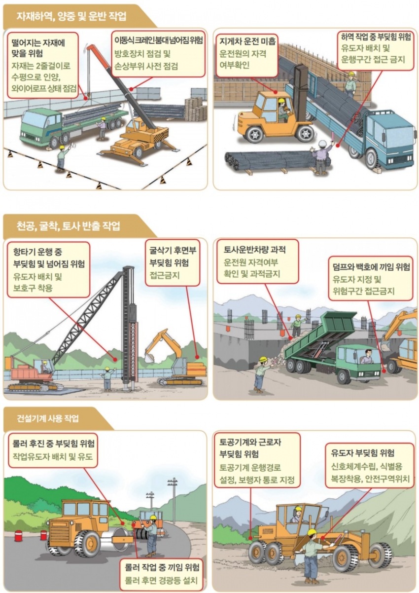 건설기계 관련 작업 중 부딪힘, 끼임, 맞음 등 사고발생과 예방대책에 대해서 자세히 알아보겠습니다.